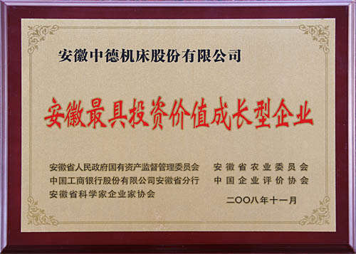 能夠進入2008年安徽最具投資價值企業(yè)的評估百強,是對企業(yè)各個方面的能力的權威肯定,因為評價結果將為各級政府決策提供參考依據,為金融機構、融資機構的企業(yè)信貸決策提供參考依據,為企業(yè)充分展示自身的成長能力、投資價值和戰(zhàn)略合作伙伴提供機會。此次進入“2008安徽最具投資價值成長型企業(yè)百強榜”對于中德機床來說,意義深遠。中德將在技術創(chuàng)新,開辟廣闊市場方面做進一步的努力。